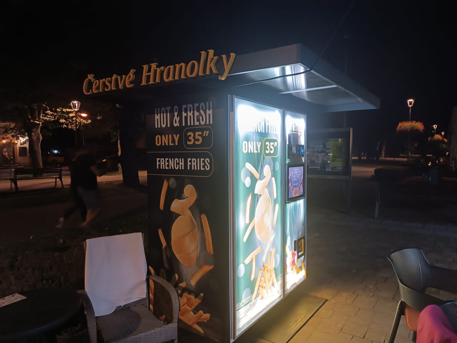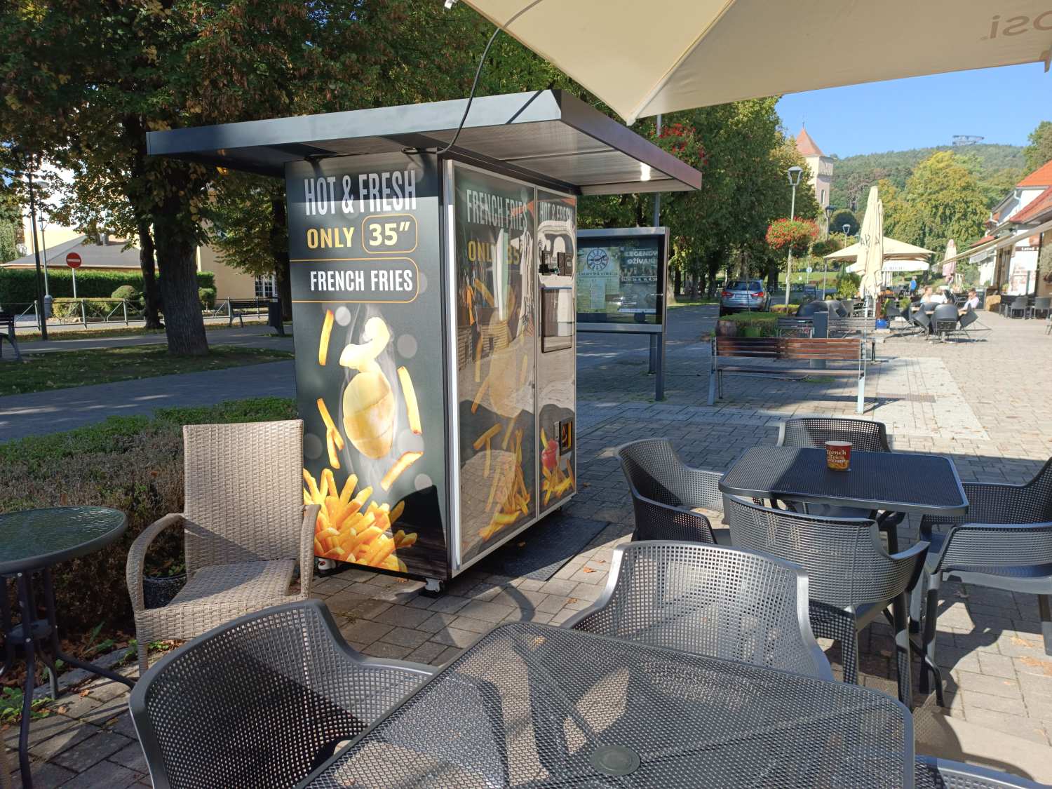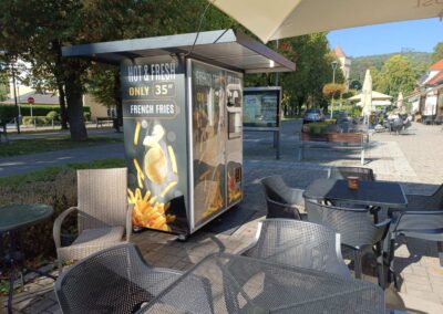 Automat bol umiestnený na námestí v Bojniciach na terase „Obchod na korze“ v mesiaci október 2023 so súhlasom mesta Bojnice. Hoci automat poskytoval pohodlnú a rýchlu možnosť občerstvenia hlavne v čase, keď už reštaurácie sú pozatvárané, museli sme ho pod hrozbou vysokých pokút z námestia odstrániť.
